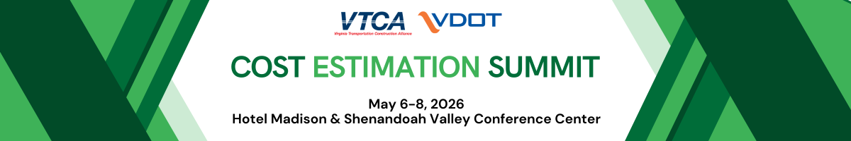The VTCA - VDOT Cost Estimation Summit is a unique annual opportunity to gain the most up to date information on transportation infrastructure cost estimating here in the Commonwealth of Virginia. This event brings together industry leaders in the field of estimating for two days of learning, networking, and having fun. The 2026 Summit includes sessions that address many of the challenges faced by the transportation estimating community. We also have two new and exciting opportunities this year: Construction Project Site Visit (geared to those with less field experience) and a Cost Estimating Competition including prizes.