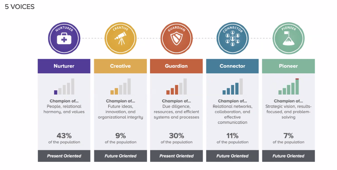 Everyone has a Leadership Voice, whether they know it or not. And every Voice brings different strengths and perspectives to the table. As Liberating Leaders, the 5 Voices helps us understand and bring out the best in each individual on our team or in our family. It is essential for building healthy relationships and culture that enable individuals and teams to reach their highest levels of performance. The problem is most people either don’t know their Leadership Voice or are insecure in the value they bring. Others simply don’t know how to use his or her Voice effectively. It is important to learn which Voices are more natural to us and which are more difficult to use and relate to. Using the insights of the 5 Voices will help you understand yourself and others better than you ever thought possible. It will allow you to grow, communicate, and perform at your best.