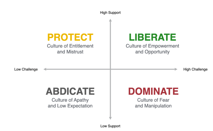 Liberating Leadership is the standard we aim for both in work and in personal relationships. The Support/Challenge Matrix defines this standard and helps us make it a reality in our own lives. It requires us to bring high support AND high challenge to those we lead and love. That is how we create a culture of empowerment and opportunity that leads to high performance. The problem is that none of us are Liberating Leaders by nature. We all have tendencies that are unhealthy. Some of us bring a lot of challenges without much support, creating a culture of fear and manipulation that dominates people. Others tend to bring high support but low challenge in an effort to protect relational harmony, all the while creating a culture of entitlement, and eventually, mistrust when passive aggression turns into explosive anger with “the last straw.” Finally, those who are burned-out create a culture of Abdication and apathy when they fail to bring either high support or high challenge. In this way, the Support/Challenge Matrix helps you understand what it’s like to be on the other side of yourself at any given time, and then guides you in plotting your course back to Liberating Leadership. This tool is your compass, and as such, it’s vital to your journey.