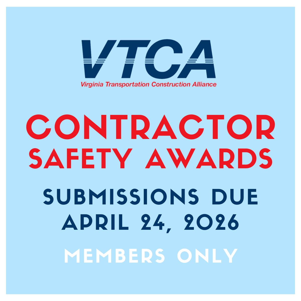 Contractor Safety Award submissions are due by April 24, 2026. Winners will be announced, and awards will be presented at VTCA's Annual Meeting in June.
