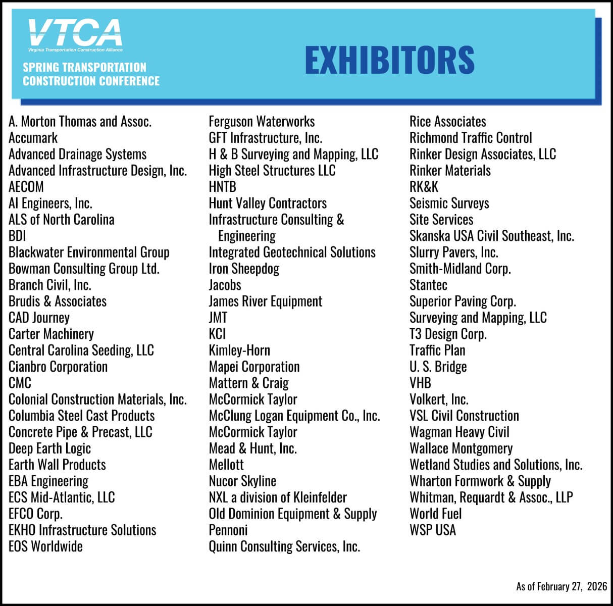 VTCA members have priority choice for exhibit space through February 25, 2025. After that date, the remaining exhibit space will be offered to non-members. Non-members are encouraged to email Stephanie Rusnak to be placed on a waiting list until February 26 when they will be notified of the remaining booth space.